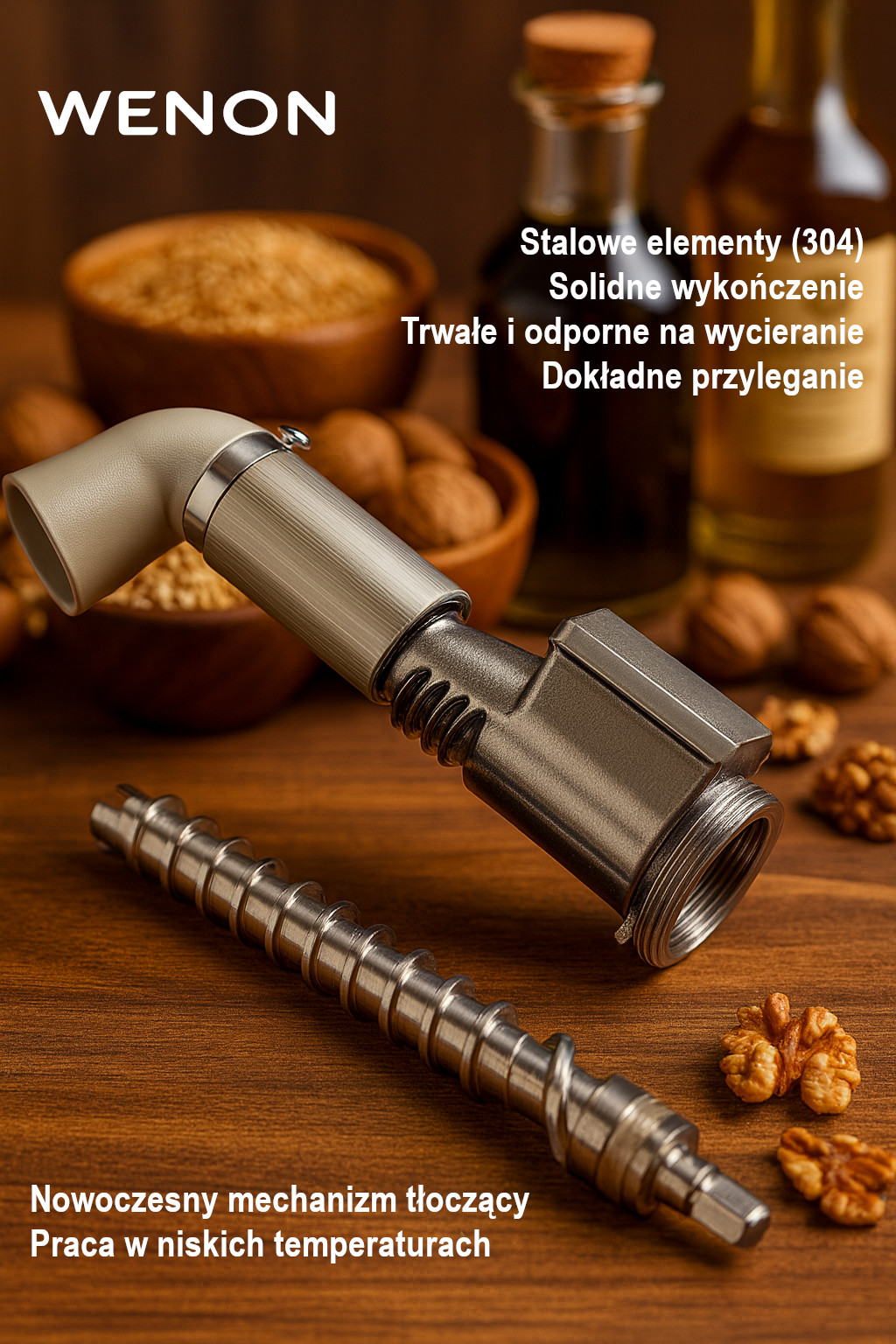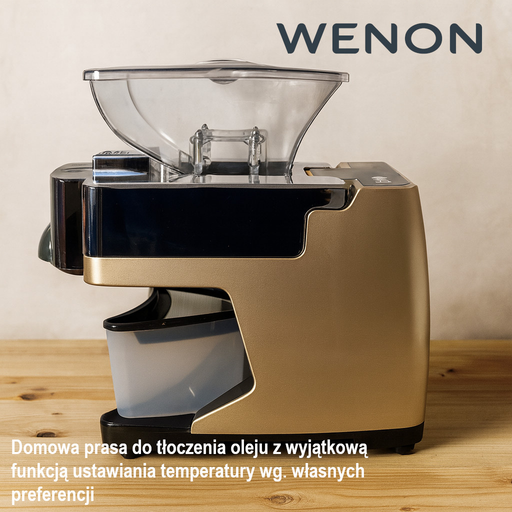 Prasa do tłoczenia oleju Wenon to nowoczesne urządzenie domowe, które umożliwia samodzielne wytwarzanie świeżego, naturalnego oleju z różnorodnych nasion i orzechów. Dzięki niej możesz cieszyć się zdrowymi tłuszczami bogatymi w kwasy omega 3, 6 i 9, bez konieczności polegania na sklepowych produktach.